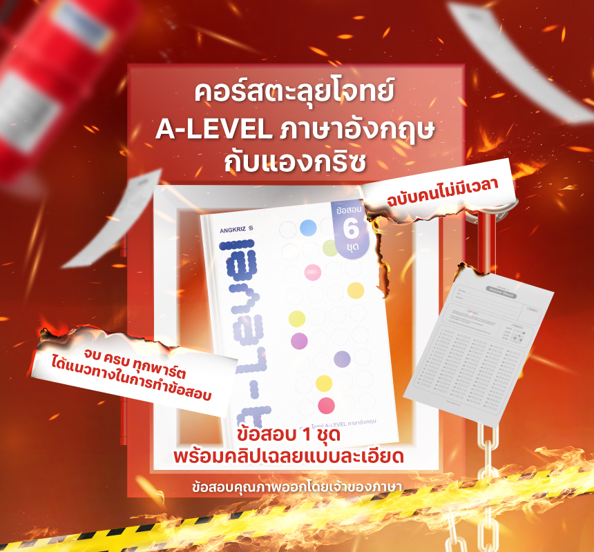 คอร์ส A-LEVEL ภาษาอังกฤษตะลุยโจทย์ ข้อสอบ 1 ชุด พร้อมคลิปเฉลย